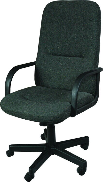 Magastámlás fotel, gázlifttel, egyéni testsúlyhoz állítható pontszinkron hintamechanikával, műanyag karfával, 5-ágú lábcsillaggal és görgőkkel.