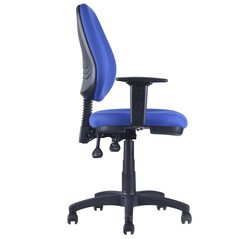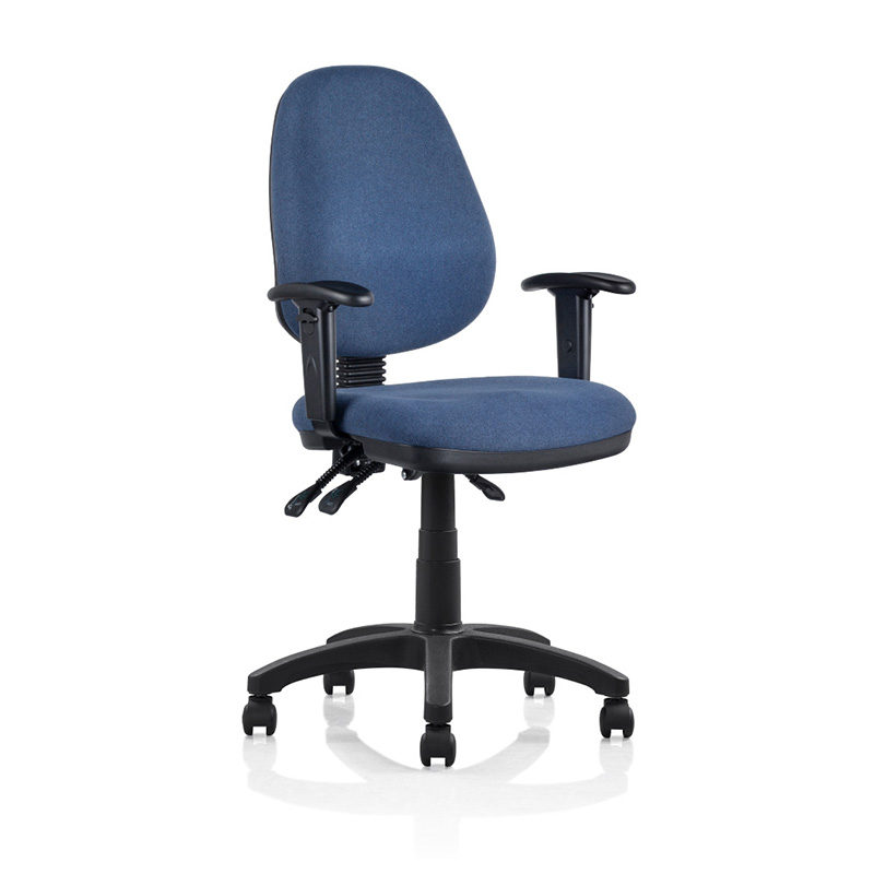 Ergomikus forgószék karfával, szövet kárpitozással. A háttámla és az ülőlap dőlésszöge külön karokkal állítható, így a forgószék ülőkényelme egyéni igények alapján állítható. A háttámla magassága szintén állítható, ezáltal a derkék megtámasztását elősegíti.