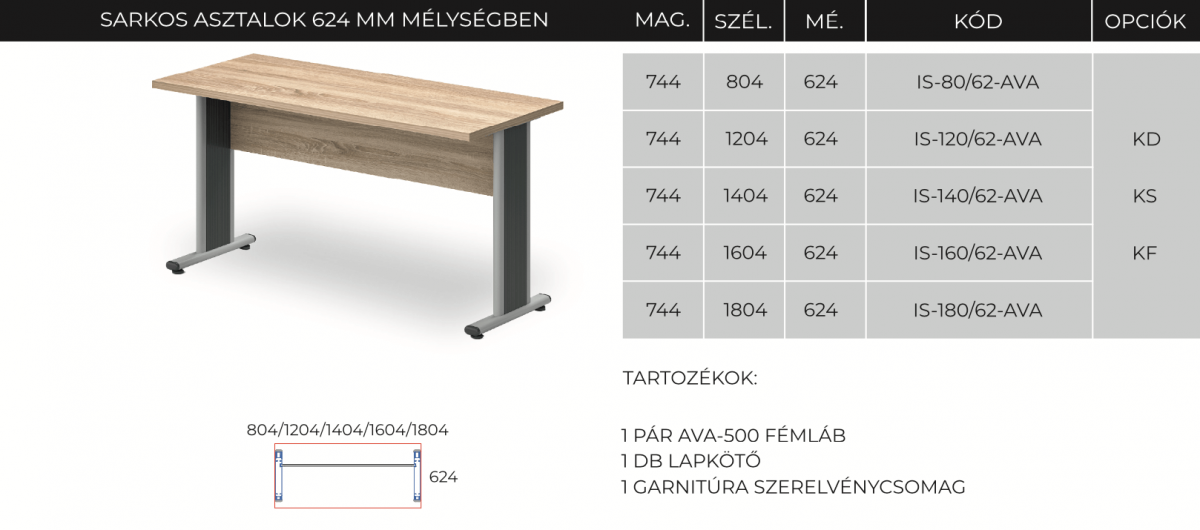 IS-80/62-AVA fém lábbal SARKOS ASZTAL