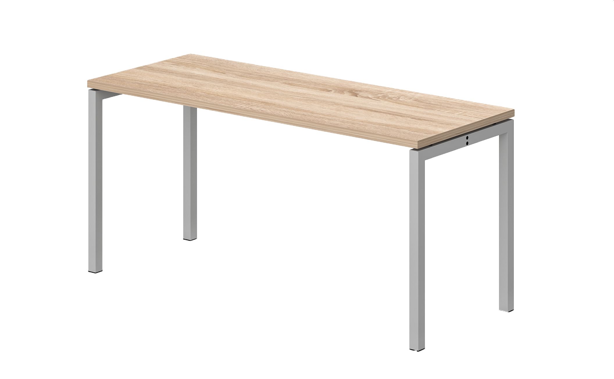 Az asztallapok kizárólag 28 mm vastag mindkét oldalon laminált faforgácslapból készülnek, 2 mm-es ABS rendszerű él léccel, mely a sérülésekkel szemben fokozottan ellenáll. Az asztalok 744 mm-es magassági alapméretre vannak beállítva. A fémlábak porszórt-festett alumínium színezetűek.