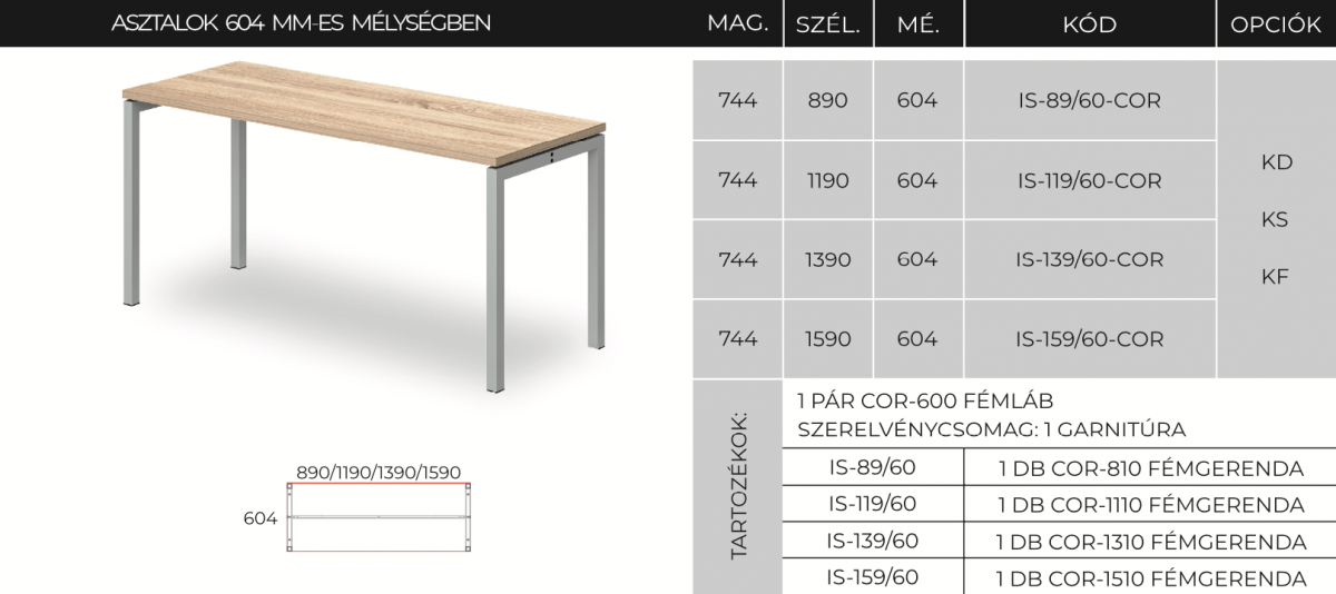 IS-89/60-COR fém lábbal SARKOS ASZTAL