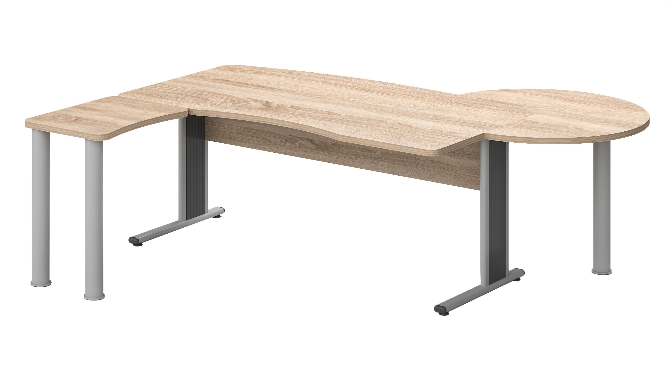 Vénusz vezetői asztal AVA fém lábszerkezettel, elegáns íves kialakítással. (Kiegészítő asztal és tárgyalótoldat nélkül) Mérete: 180*102*74 cm Az asztalok formai és méretbeli kialakítása maximálisan igazodik mind az egyéni ízléshez, mind pedig a funkcionális igényekhez.